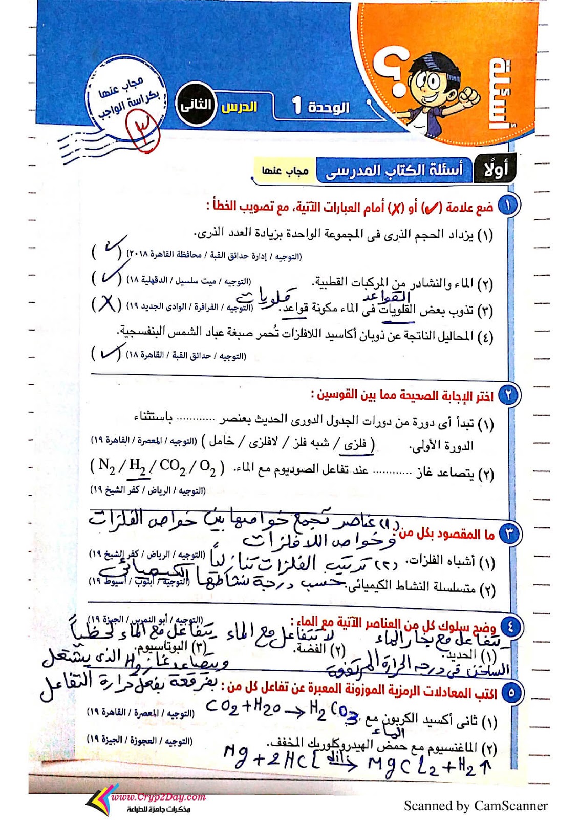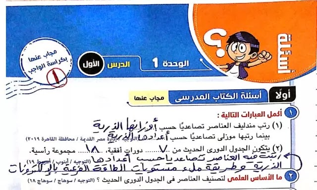 الصف الاول الاعدادي العلوم إجابات كتاب الوزارة الفصل الدراسي الاول 2021
