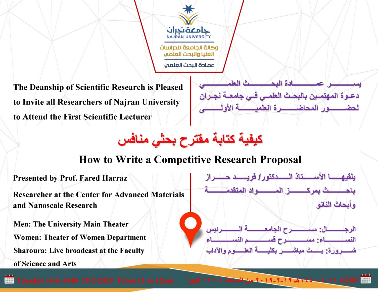 محاضر علمية بعنوان كيفية كتابة مقترح بحثي منافس