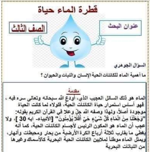 قدم الان بحث عن الماء للصف الثالث الابتدائي تسليم البحث إلكترونيا بصيغة Pdf موجز مصر