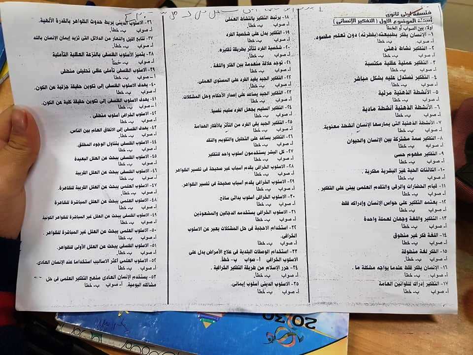 أسئلة فلسفة لأولي ثانوى الترم الاول 2020 نظام التابلت الجديد الامتحان التعليمى
